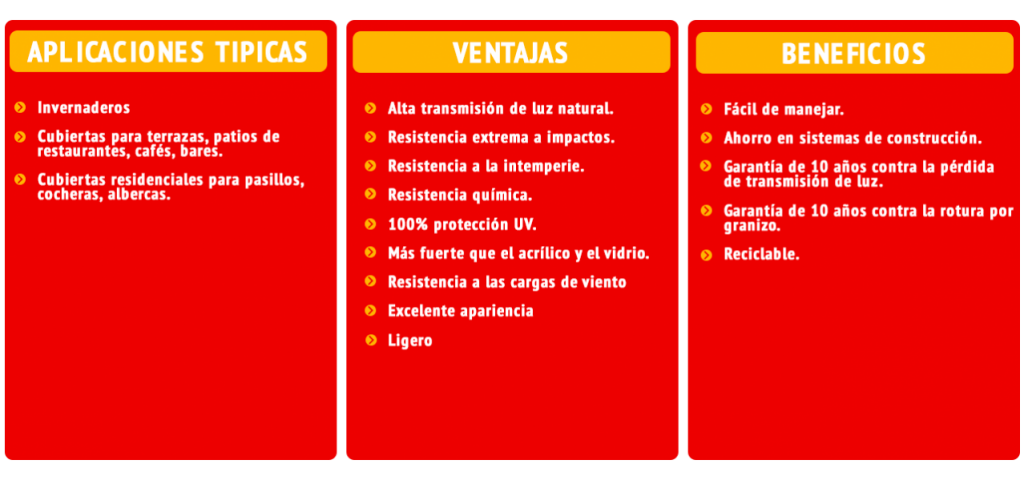 SU FABRICACIÓN ES BASADA EN CELDAS DE DISTRITOS TAMAÑOS PARA UNA MAYOR CAPACIDAD ESTRUCTURAL, DENTRO DE SUS BENEFICIOS ES QUE ES ALTAMENTE RESISTENTE A GOLPES E INCLEMENCIAS DEL TIEMPO, TALES COMO ALTAS CARGAS DE VIENTO, LLUVIA, GRANIZO Y MÁS.